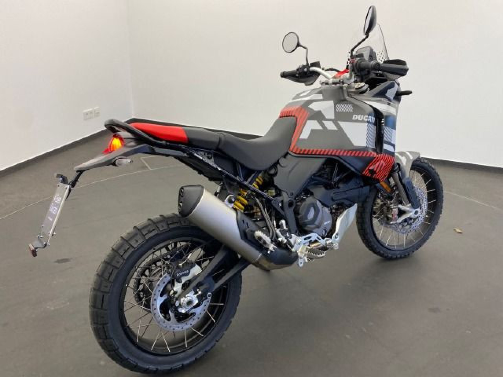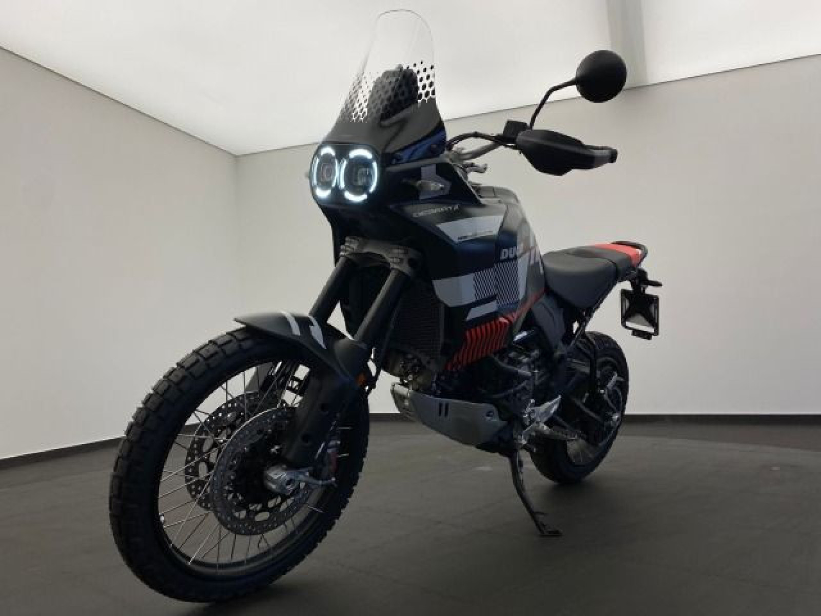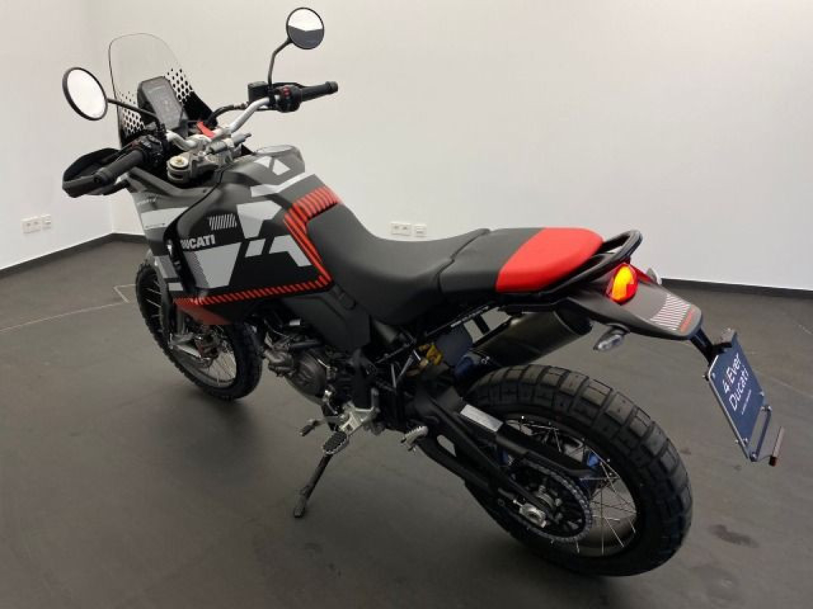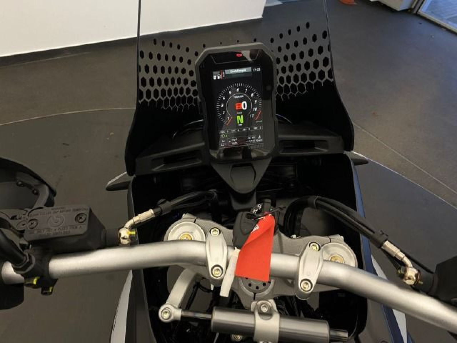 * Motortyp Testastretta 11°: flüssigkeitsgekühlter Zweizylinder in L-Form, 4 Ventile pro Zylinder, desmodromisch gesteuert Hubraum 937 cm³ Leistung 110 PS (81 kW) bei 9.250 U/min Drehmoment 92 Nm bei 6.500 U/min Getriebe 6-Gang-Getriebe mit Ducati Quick Shift (DQS) Up / Down Kupplung Hydraulisch betätigte Mehrscheiben-Ölbadkupplung mit Anti-Hopping-Funktion und Servo- Unterstützung Rahmen Stahl-Gitterrohrrahmen Vorderradfederung Voll einstellbare Upside-Down-Gabel von Kayaba mit Ø 48 mm Standrohrdurchmesser, Federweg 230 mm Vorderradbereifung Pirelli Scorpion Rally STR 90/90 - 21 M/C 54V M+S TL (A) Hinterradfederung Voll einstellbares Kayaba Mono-Federbein mit externem Federvorspannungseinsteller, Aluminium- Zweiarmschwinge, Federweg 220 mm Hinterradbereifung Pirelli Scorpion Rally STR 150/70 R18 M/C 70V M+S TL Bremse vorn 2 x Ø 320 mm halbschwimmend gelagerte Bremsscheiben mit Achsbefestigung aus Aluminium, radial verschraubte Brembo Monoblock 4-Kolben Bremszangen, Kurven-ABS Bremse hinten Ø 265 mm Bremsscheibe, Brembo 2-Kolben-Schwimmsattel, Kurven-ABS Trockengewicht 202 kg Gewicht fahrfertig 223 kg Sitzhöhe 875 mm Bodenfreiheit 250 mm Tankinhalt 21 l Serienausstattung Riding Modes, Power Modes, Kurven-ABS, Ducati Traction Control (DTC), Ducati Wheelie Control (DWC), Engine Brake Control (EBC), Ducati Quick Shift (DQS) Up/Down, Tempomat, Voll-LED- Scheinwerfer mit Daytime Running Light (DRL), Ducati Brake Light (DBL), USB- und 12V-Steckdose, automatische Blinkerrückstellung, Lenkungsdämpfer Vorbereitet für Ducati Multimedia System (DMS), Anti-Diebstahl-System, Turn-by-Turn Navigation via App, Nebelscheinwerfer, Heizgriffe, Reserve-Tank Service 15.000 km / 24 Monate Kontrolle des Ventilspiels 30.000 km Garantie 48 Monate ohne Kilometerbegrenzung Emissionen und Verbrauch Standard Euro 5 - CO2-Emissionen 133 g/km - Verbrauch 5, 6 l/100 km